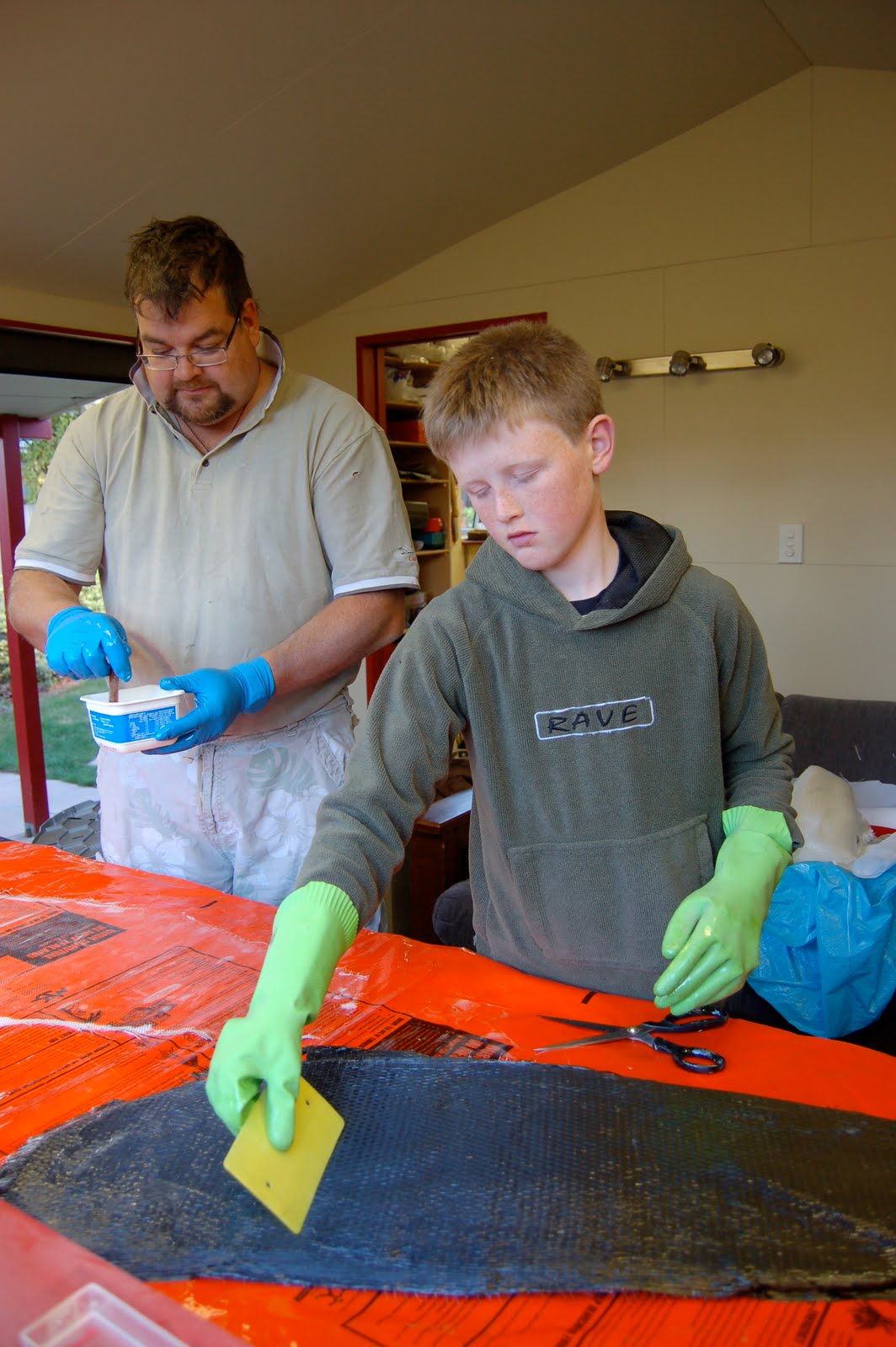 Wetting out cedar and also unicloth.